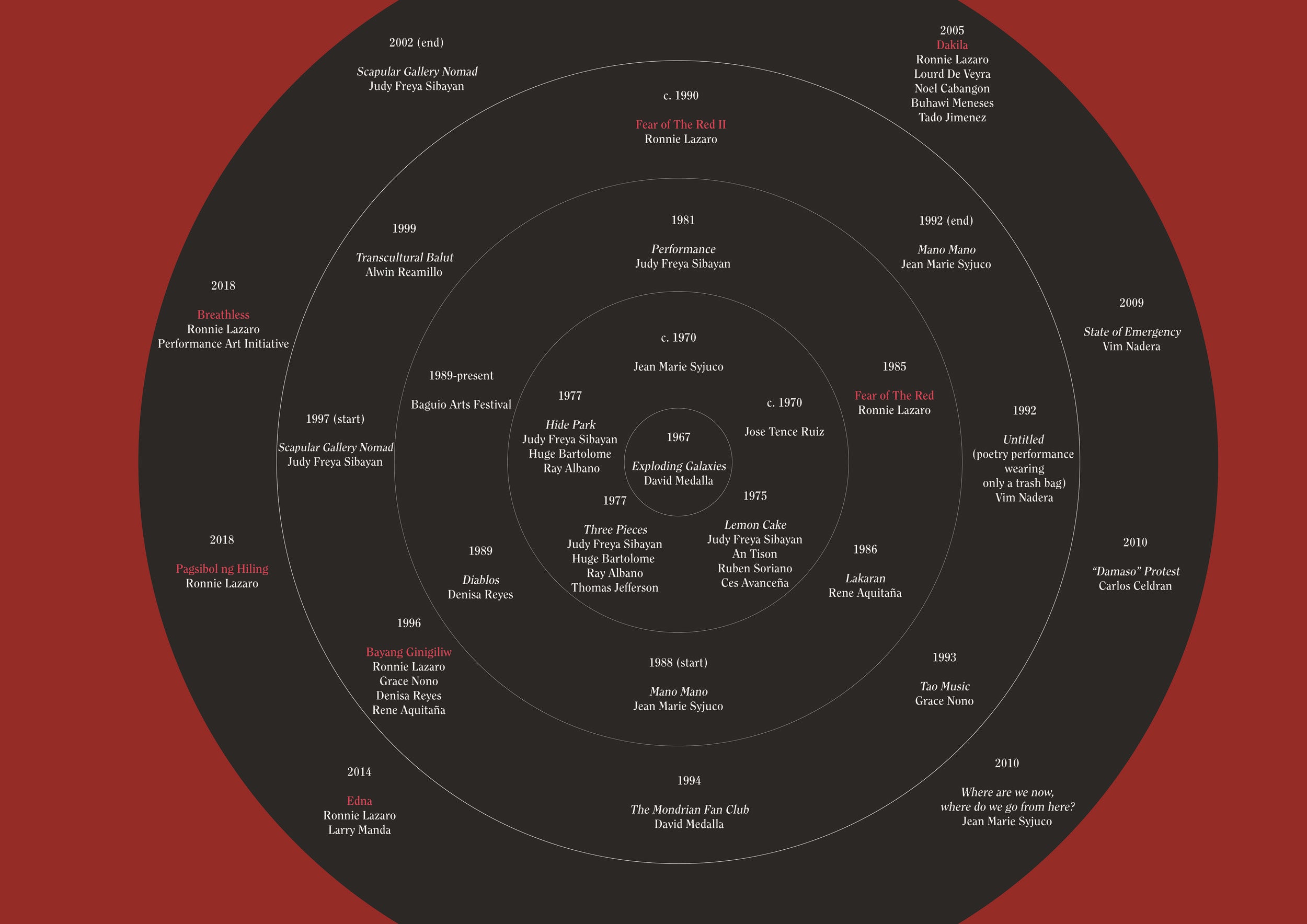 “Documents for Performance Art” displays the rigorous documentation by Larry Manda, Ben Razon, and MM Yu from Ronnie Lazaro’s recent performance art pieces: Breathless, held last July 21, 2018, and Pagsibol ng Hiling, last May 17, 2018, which commemorated his 1996 performance, Bayang Ginigiliw. This showcases performance art through the lense of media, specifically photography and videography. The lack of documentation of previous performance art pieces has led to the creation of the “Documents for Performance Art” exhibit.