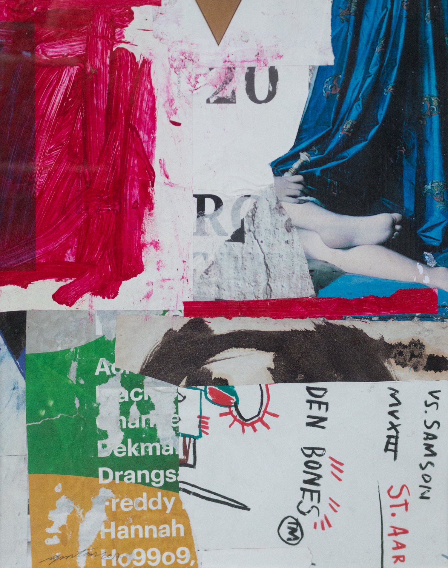 He also quietly acknowledges the vitality of collaborative work in the act of repurposing materials of artistic labor. The collages are anthropological archives that offer a glimpse, not only into the artist’s own mind operating in response to form, but also to the entire history and network of people whose art is re-presented in the act of mechanical and digital reproduction.