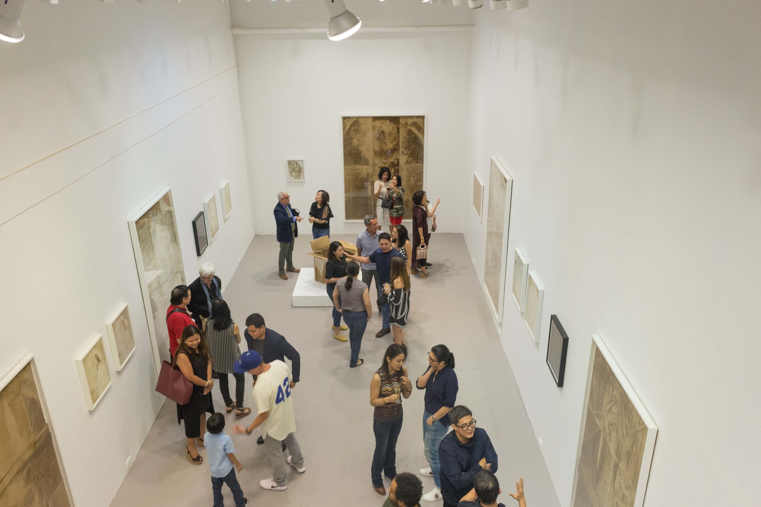 But Paz also brings us back to the diaspora and politics of the present, in the work Untitled (Balikbayan Box, It’s a Journey Back that I’m Always Taking). Immigrating to the U.S. in the mid-1980s, Paz recalls how the ubiquitous cardboard boxes—representing an entire economy shuttled back and forth across the country and abroad by courier firms—became symbols of the Philippines for those based on both sides of the Pacific. The resulting work reinstalls the balikbayan box as repository of memory—rid of all previous functionality, except to stand as witness to history and its unravellings.