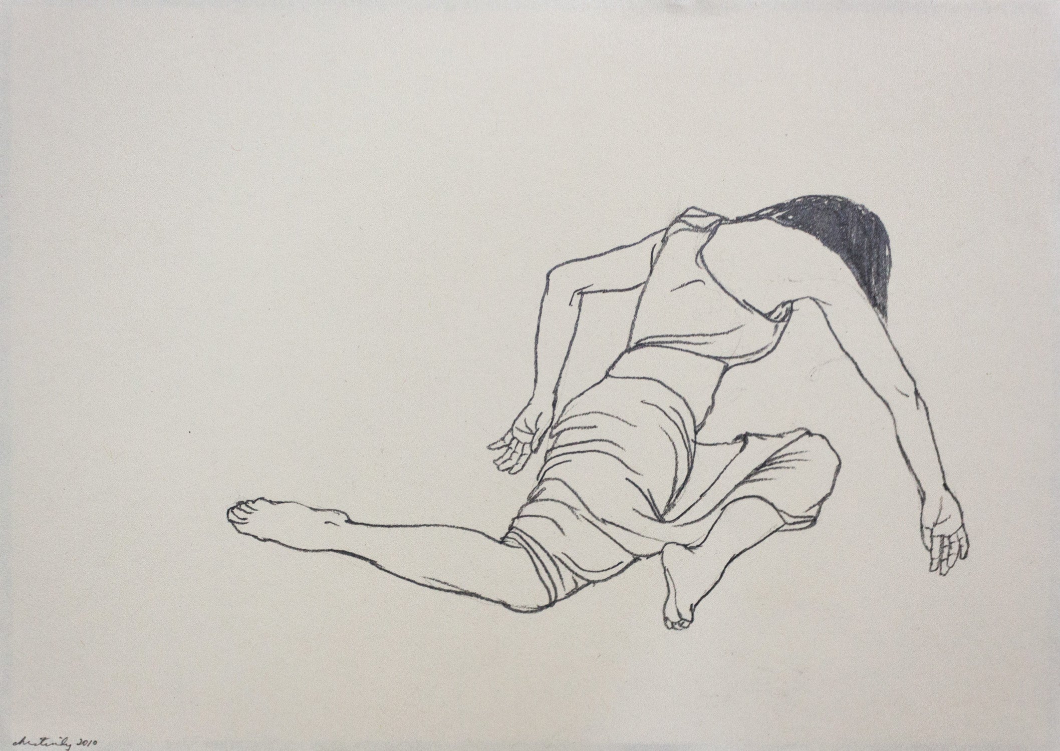 Christina Dy unfurls a suite of these drawings that encompass her transition from large-scale format pictures of the seas and skies, to intimate-scaled sketches of nudes, to her more recent exploration of drawing on folded paper that are configured into tangram puzzle pieces. With the myriad scale of her works, they also manifest the different drawing techniques she employs relative to the format and subject of her works – from brooding gray shades of graphite and charcoal of macro views of surfaces, to fine linear renderings of the human anatomy and insect appendages with a mechanical pencil. Archivo 1984 presents for the first time these drawings that show Christina’s kaleidoscopic practice, as an artist and as a performer/dancer, and breaking frontiers between such.