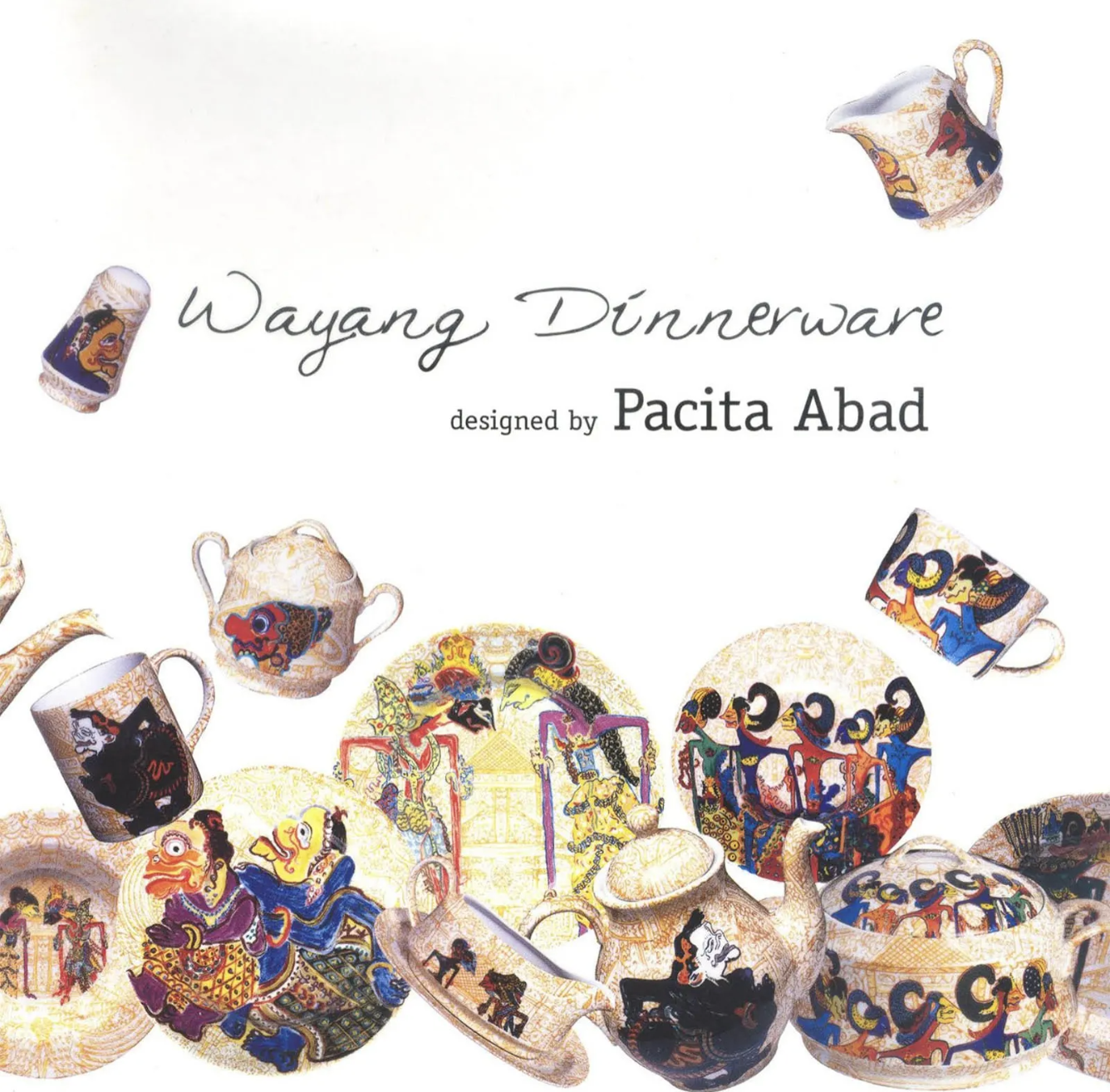 This 147-piece "Wayang" porcelain dinnerware-set made in Indonesia is inspired by the characters of the Ramayana, including the Pandawa brothers, Rama Shinta and Pandu Dewanata, among others. The characters were initially painted on large-scale Trapunto paintings.